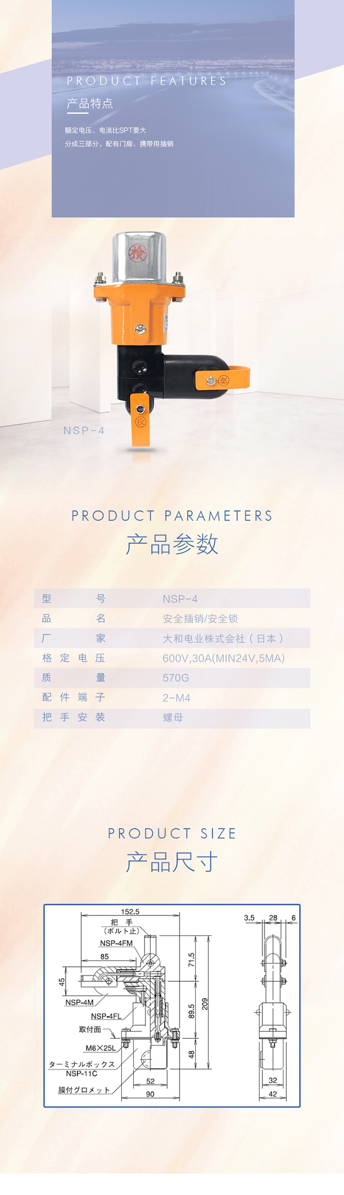 中山川井貿易有限公司現貨供應日本大和電業Daiwa Dengyo安全插件(INTERLOCK PLUG),NSP-4安全鎖,NSP-4安全開關,NSP-4安全栓,NSP-4安全插銷,NSP-4連鎖插頭,NSP-4連鎖開關,NSP-4安全插扣。歡迎垂詢,電話:0760-85338981-605,傳真:0760-85338185,手機:18825311471,郵箱:sales11@zskawai.com