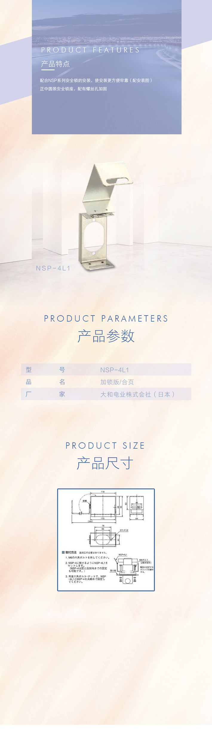 中山川井貿(mào)易有限公司現(xiàn)貨供應(yīng)日本大和電業(yè)Daiwa Dengyo安全插件(INTERLOCK PLUG),NSP-4L1加鎖板,NSP-4L1安裝支架,NSP-4L1安裝盒。歡迎垂詢,電話:0760-85338981-605,傳真:0760-85338185,郵箱:sales11@zskawai.com,QQ:1521225565