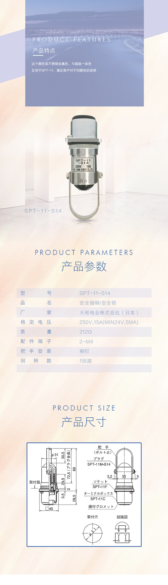 中山川井貿易有限公司現貨供應日本大和電業Daiwa Dengyo安全插件(INTERLOCK PLUG),SPT-11-S14安全鎖,SPT-11-S14安全開關,SPT-11-S14安全栓,SPT-11-S14安全插銷,SPT-11-S14,連鎖插頭,SPT-11-S14連鎖開關,SPT-11-S14連鎖插銷。歡迎垂詢,電話:0760-85338100,傳真:0760-85338185,郵箱:sales-ec@zskawai.com,QQ:1521225565