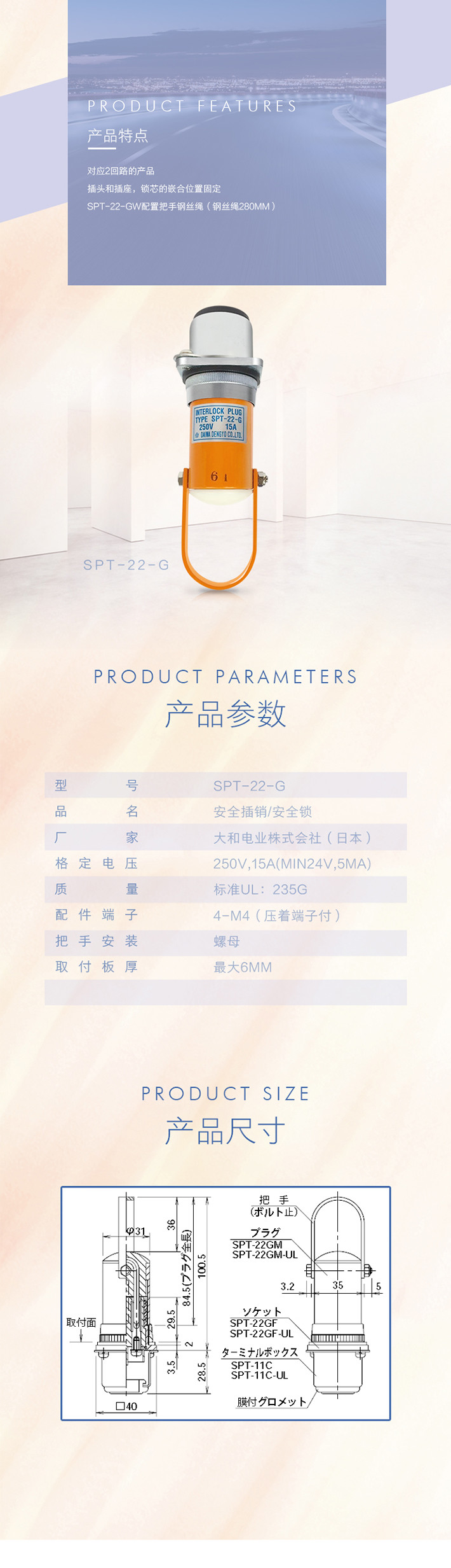 中山川井貿(mào)易有限公司現(xiàn)貨供應(yīng)日本大和電業(yè)Daiwa Dengyo安全插件(INTERLOCK PLUG),SPT-22-G安全鎖,SPT-22-G安全開關(guān),SPT-22-G安全栓,SPT-22-G安全插銷,SPT-22-G連鎖插頭,SPT-22-G連鎖開關(guān),SPT-22-G連鎖插銷。歡迎垂詢,電話:0760-85338100,郵箱:sales-ec@zskawai.com