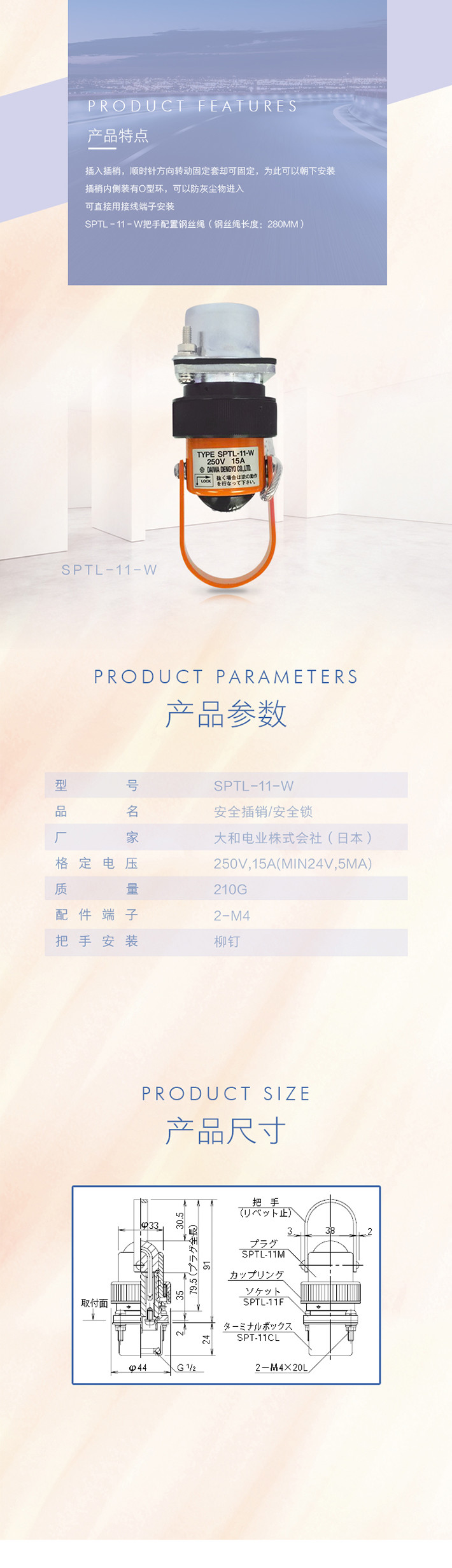 中山川井貿易有限公司現貨供應日本大和電業Daiwa Dengyo安全插件(INTERLOCK PLUG),SPTL-11安全鎖,SPTL-11安全開關,SPTL-11安全栓,SPTL-11安全插銷,SPTL-11連鎖插頭,SPTL-11連鎖開關,SPTL-11安全插扣。歡迎垂詢,電話:0760-85338100,傳真:0760-85338185,郵箱:sales-ec@zskawai.com,QQ:1521225565