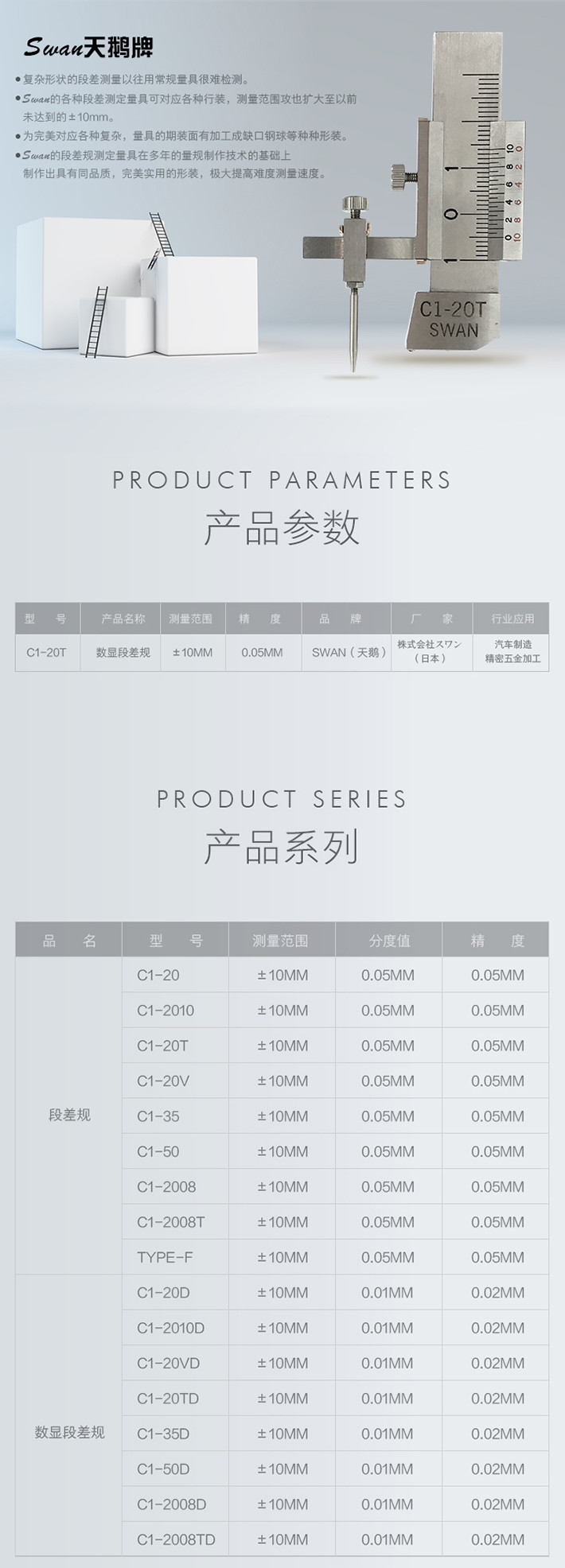 中山川井貿易有限公司現貨供應日本天鵝牌SWAN段差規、球規、塞尺、墊片。現貨銷售C1-20段差規,C1-20T段差尺,C1-20T面差尺,C1-20T卡尺。歡迎垂詢,電話:0760-85338981-605,傳真:0760-85338185,郵箱:sales-ec@zskawai.com,QQ:1521225565