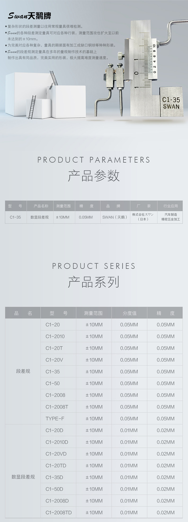中山川井貿易有限公司現貨供應日本天鵝牌SWAN段差規、球規、塞尺、墊片、游標卡尺。現貨銷售C1-20段差規,C1-35段差尺,C1-35面差尺,C1-35卡尺。歡迎垂詢,電話:0760-85338981-605,傳真:0760-85338185,郵箱:sales-ec@zskawai.com,QQ:1521225565