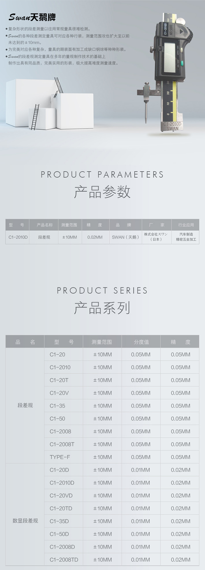中山川井貿易有限公司現貨供應日本天鵝牌SWAN段差規、球規、塞尺、墊片。現貨銷售C1-20段差規,C1-2010D數顯段差尺,C1-2010D數顯面差尺,C1-2010D數顯卡尺。歡迎垂詢,電話:0760-8533100,傳真:0760-85338185,郵箱:sales-ec@zskawai.com,QQ:1521225565