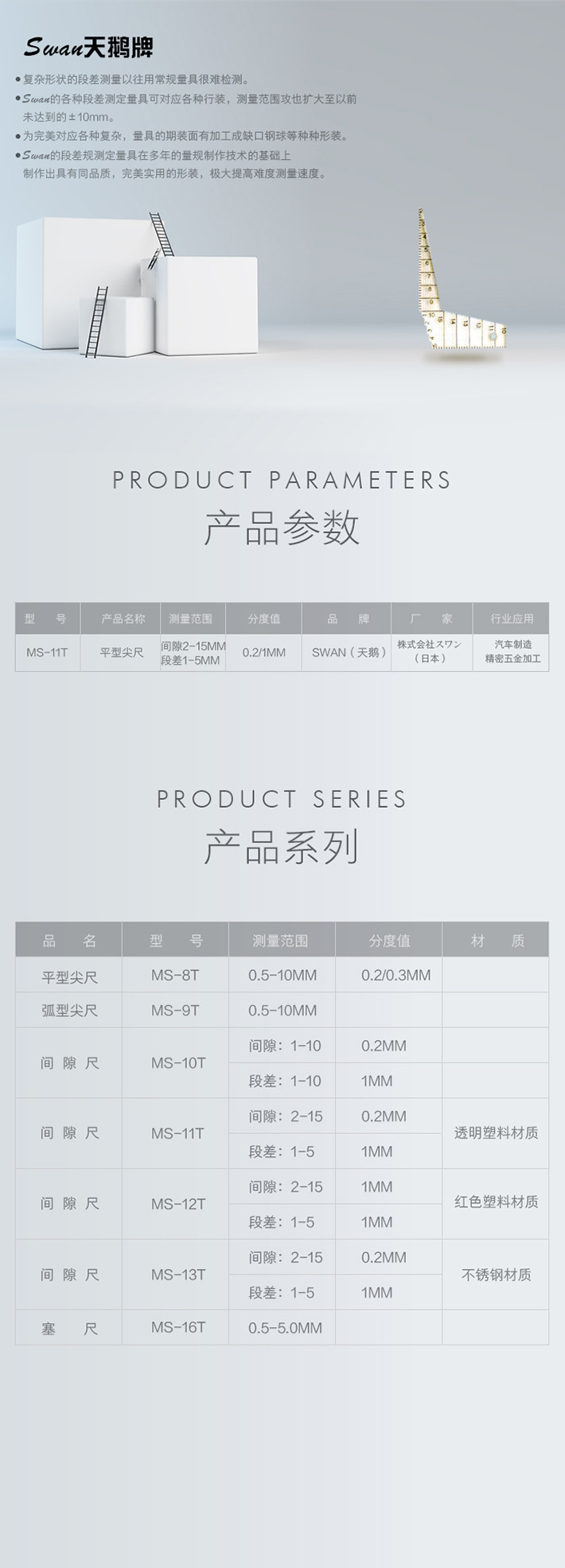 中山川井貿(mào)易有限公司現(xiàn)貨供應(yīng)日本天鵝牌SWAN段差規(guī)、球規(guī)、塞尺、墊片。銷售MS-11T間隙規(guī),MS-11T間隙尺,MS-11T量尺。歡迎垂詢,電話:0760-85338100,傳真:0760-85338185,郵箱:sales-ec@zskawai.com,QQ:1521225565