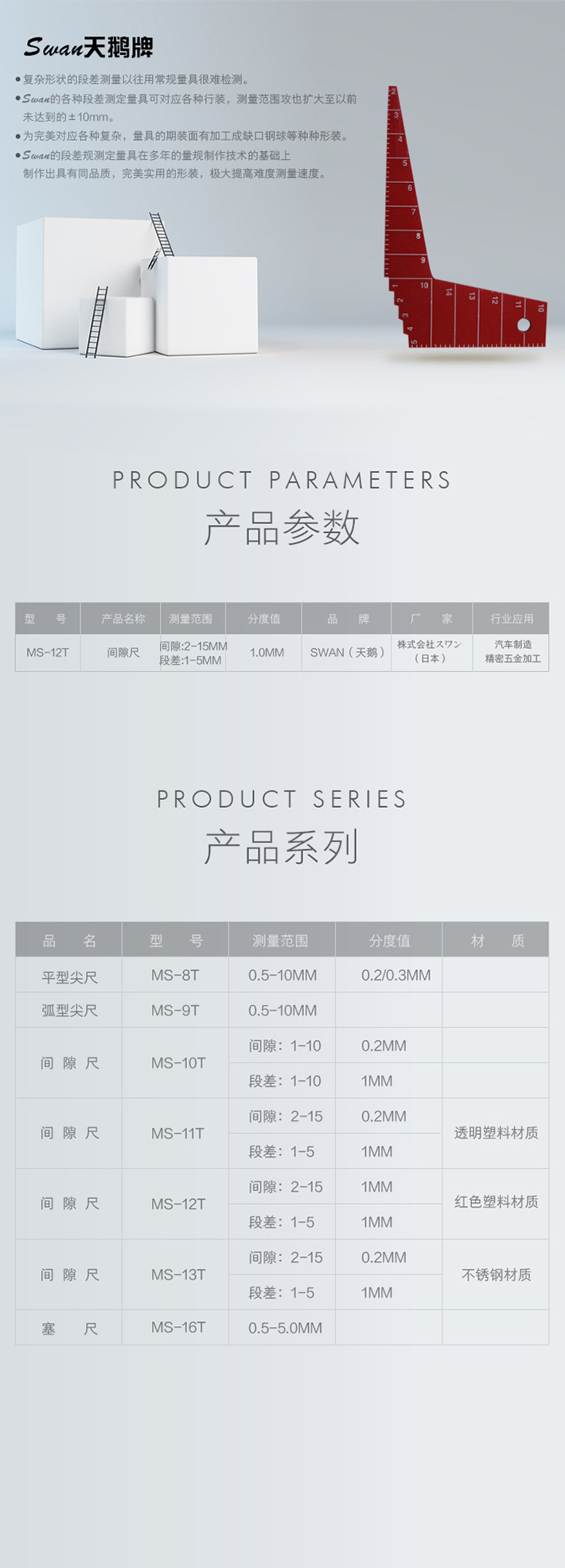 中山川井貿(mào)易有限公司現(xiàn)貨供應(yīng)日本天鵝牌SWAN段差規(guī)、球規(guī)、塞尺、墊片。銷售MS-12T間隙規(guī),MS-12T間隙尺,MS-12T量尺。歡迎垂詢,電話:0760-85338100,傳真:0760-85338185,郵箱:sales-ec@zskawai.com,QQ:1521225565