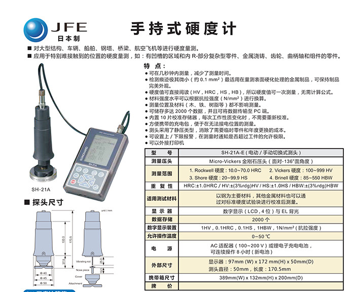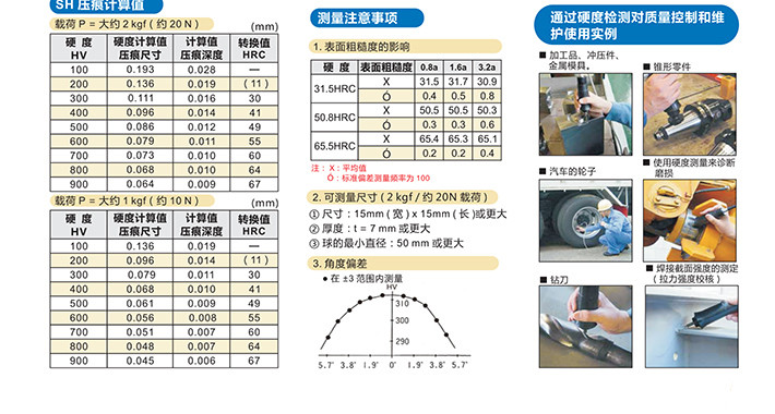 檢測(cè)痕跡極其微小(約0.1mm2)最適用在量測(cè)表面硬化處理的金屬制品,可保持制品完美外觀。