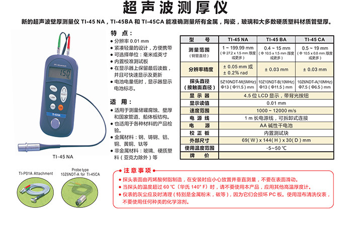 當前位置 首頁 » 產品展示 » 測量儀器 » 超聲波測厚儀 » 便攜式TI-45NA超聲波測厚儀數顯分辨率0.01mm