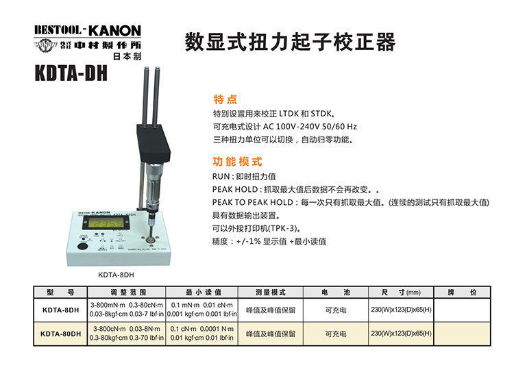 當前位置 首頁 » 產品展示 » 測量儀器 » 扭力起子校正器 » 數顯電子式可充電AC100V-240V 50/60Hz扭力起子校正器KATA系列