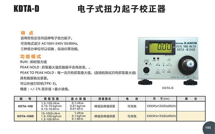 數顯電子式可充電AC100V-240V 50/60Hz扭力起子校正器KATA系列