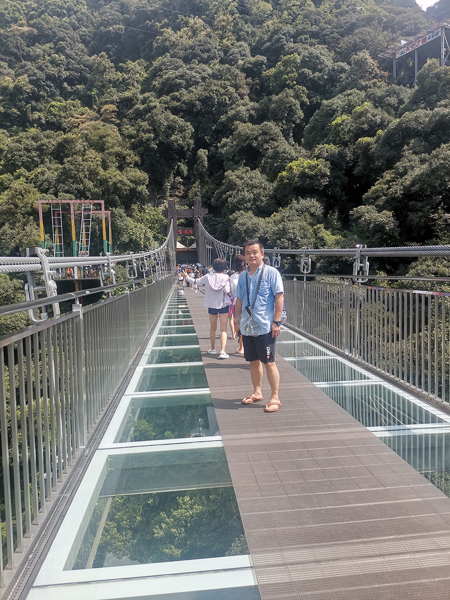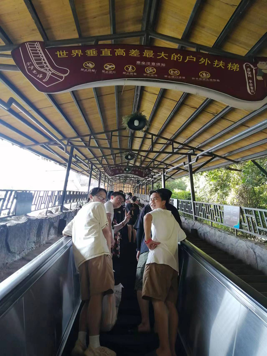 游客可通過單級戶外扶梯,從峽谷中部直抵云天玻霸玻璃橋。整座電梯中間沒有再設平臺,一梯到頂,電梯上面安裝了遮陽雨棚。2分45秒,相當于提升了30層樓的高度。