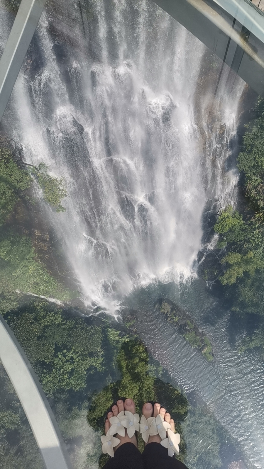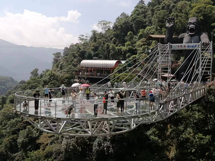 古龍峽云天玻霸,是一個集懸空玻璃平臺、玻璃懸廊、玻璃棧道、玻璃吊橋、玻璃天鏡、玻璃直播間6位一體的玻璃觀光組合。景區使用3層6.0厘米厚度的超白夾膠玻璃,透光率99.15%,具有清晰的亮度、超高的光折射率。6大玻璃項目懸浮在古龍峽高度530米的群山之巔、瀑布之上,從懸崖絕壁凌空而出,全長1300米,面積1.2萬平米,氣勢磅礴而又和諧統一。高差達千米的古龍大峽谷集瀑布、深潭、奇石、叢林于一體,其中的萬丈崖大瀑布,單體落差達131米。云天玻霸包攬12項世界紀錄,問鼎世界高空游覽新霸主。