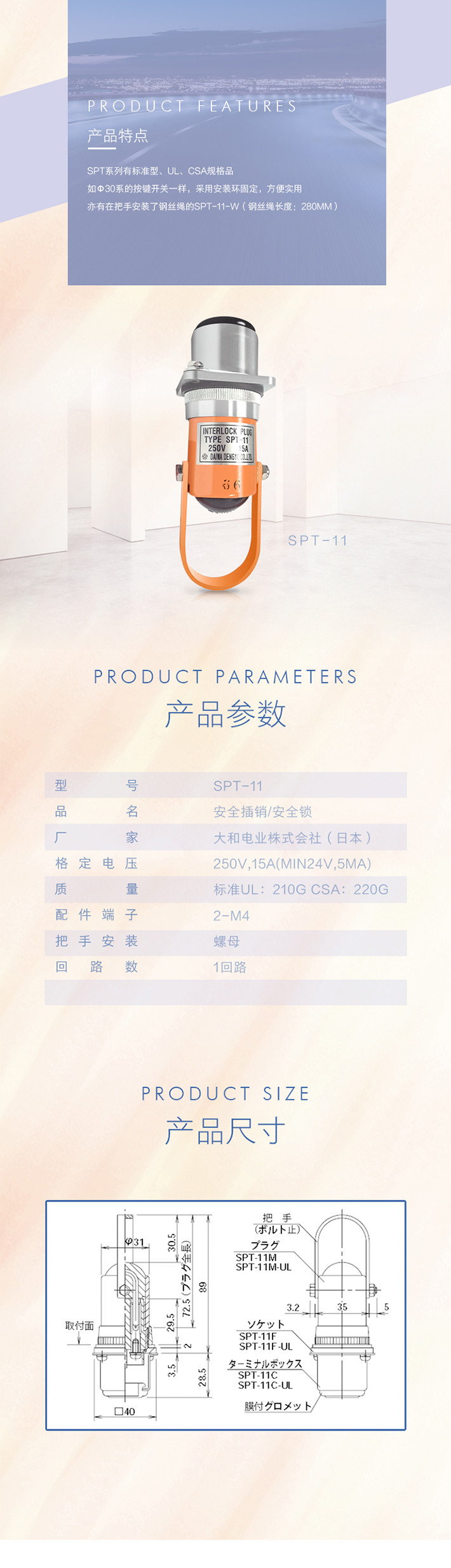 中山川井貿易有限公司現貨供應日本大和電業Daiwa Dengyo安全插件(INTERLOCK PLUG),SPT-11安全鎖,SPT-11安全開關,SPT-11安全栓,SPT-11安全插銷,SPT-11安全插扣,SPT-11連鎖開關,SPT-11連鎖插銷。歡迎垂詢,電話:0760-85338100